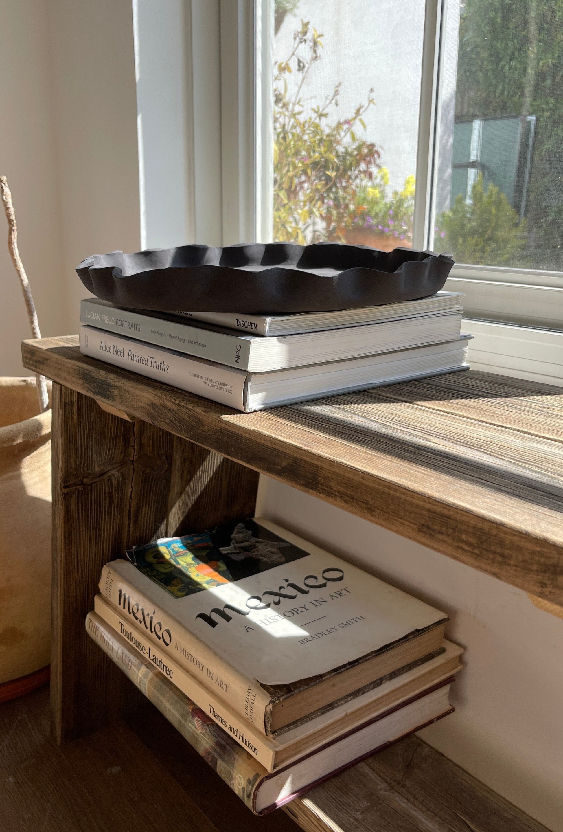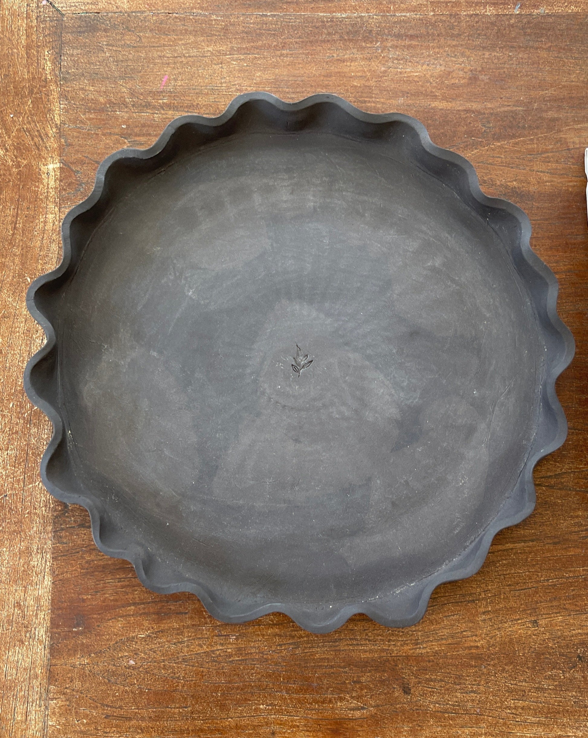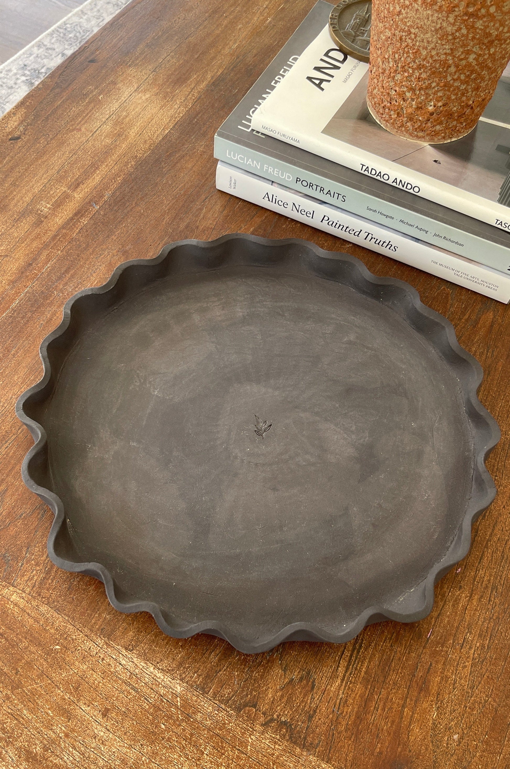 מגש עגול עם קצוות מסולסלים ומרקם טבעי, ללא גלזורה, המוסיף מגע מתוחכם לכל חלל. מושלם כפריט עיצובי בסלון או בכל חלל שתבחרו.